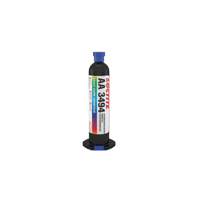 LOCTITE® AA 3494 is a transparent, acrylic-based, medium-viscosity light-cure adhesive. It cures in seconds to form an impact-resistant bond with excellent resistance to prolonged humidity or water immersion. Ideal for bonding and sealing or potting applications of glass to itself or other materials, such as rough surface decorative glass, moulded glass tableware items or automotive lighting components.