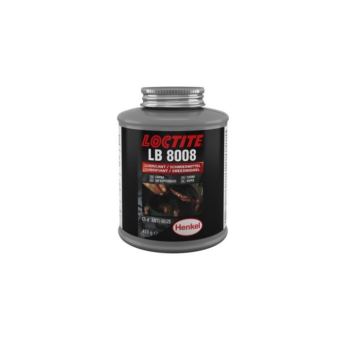 LOCTITE® LB 8008 C5-A anti-seize lubricant paste is a quality grease that contains copper and graphite. Applications include screws, nuts, pipes, exhaust bolts and brake caliper bolts. Resistant to extremely high temperatures (up to 980°C / 1796°F) and protects from rust, corrosion, galling and seizing. It has an NLGI Grade of 0.