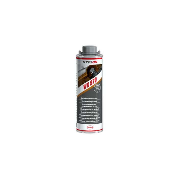 TEROSON® WX 970 is an anthracite, wax-based anti-corrosive agent for protecting vehicle underbodies. It is designed for touch-up and repair of factory-applied underbody coatings. The product is applied with the TEROSON® UBC Gun from 1 l (35 oz) cans, but can also be airless-sprayed from drums. It can be applied with a thickness of up to 1 mm (0.039") on materials based on PVC, PVC wax, bitumen/rubber, and rubber/resin. TEROSON WX 970 contains solvents and is based on wax and polymers, with a solid content of approximately 50%. It is bitumen-free and stops water penetration.
